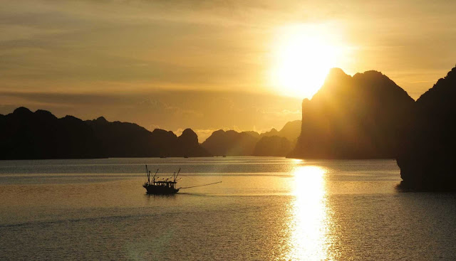 Baía de Ha Long, Vietname - Este labirinto de pedras calcárias que emergem da água é o cenário perfeito para o sol erguer-se e provocar uma paisagem única. © Shutterstock