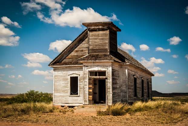 Construída em 1904, essa igreja era um ponto de parada popular para foras da lei, incluindo Billy the Kid, por volta do início dos anos 1900. Depois da crise de 1930 e da subsequente seca, os moradores lentamente começaram a abandonar a cidade. O último sermão da igreja foi dado em 1936